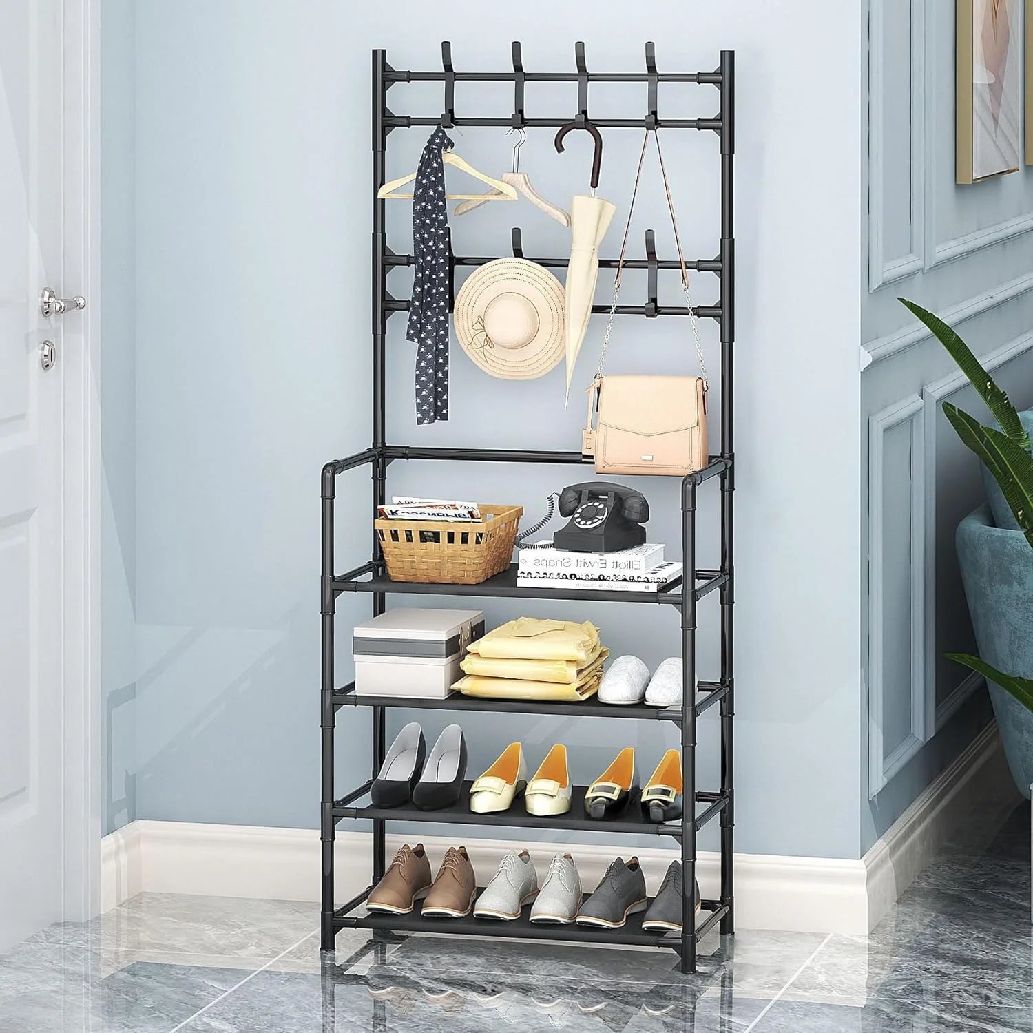 Étagère à Chaussures avec Porte-Manteau